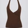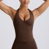 Your favourite soft girl aesthetic meets a deliciously smooth palette with this tank top, perfect for workout class-to-coffee styling. Crafted from premium marl jersey fabric with a super soft feel, it’s cut to a halterneck silhouette with a secure fixed strap, internal padding and features a wrap-over design inspired by classic styles. It’s complete with an open back and signature subtle branding at the back.