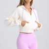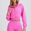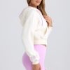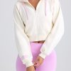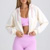 Off-duty, in comfort. Designed to coordinate with shorts and leggings from the collection, this zip-up hoodie is modelled on classic Y2K styles. It’s crafted from super soft brushed fleece to a cropped silhouette with long raglan sleeves and elevated with contrasting trims. It’s complete with adjustable drawstrings at the hood and an embroidered cursive Bo&Tee logo at the front.
