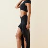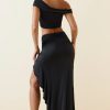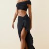 Statement separates. The perfect styling piece for your evening wardrobe, the Imaan maxi skirt is crafted to a low-rise silhouette from lightweight, slinky stretch jersey that skims your curves. It’s elevated with an asymmetric ruched waistband and elevated with cascading ruffles along the thigh-high front split.
