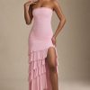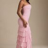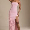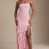 Ethereal silhouettes for social season. The perfect complement to special events, the Hayami maxi dress is cut to a bodycon silhouette with a ruffled column skirt. It’s crafted from lightweight sheer jersey with a full lining and features perfectly placed ruching at the bodice for a figure-flattering finish. The bandeau neckline is traced with unique appliqué detailing, echoing the collection’s attention to detail.