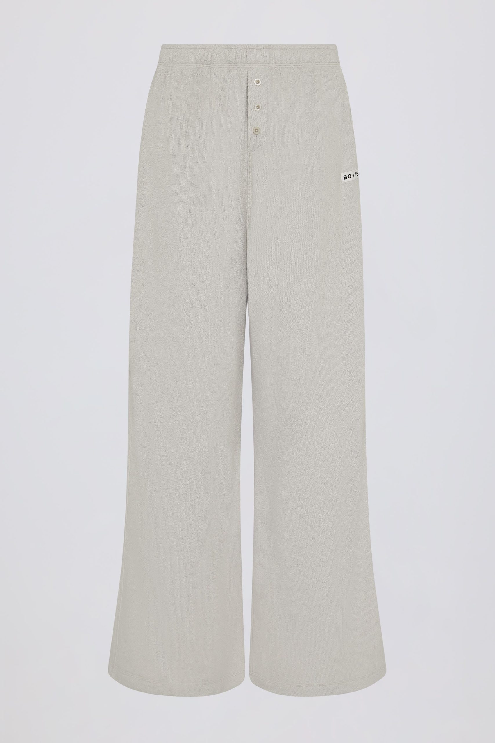 Soft-touch silhouettes for easy styling from the airport to the trip. Crafted from textured cotton-blend terry with a lightweight and breathable feel, these wide-leg joggers are set on a non-restrictive low-rise waistband, elevated with a decorative button fly and feature two practical slip pockets that cement the laid-back feel.