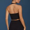 Cable-Knit Halterneck Crop Top in Black