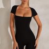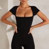 Cut from our premium modal fabric in two easy to wear colourways, the Bea romper is an all new variation of our signature unitard silhouette you all know and love. The square neckline and angled shoulders accentuate your bust whilst the seamless bodycon design flatters you from every angle. Cut to a short length with sporty style short cap sleeves, we love this flattering unitard for comfortable and flattering off-duty styling.