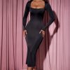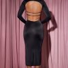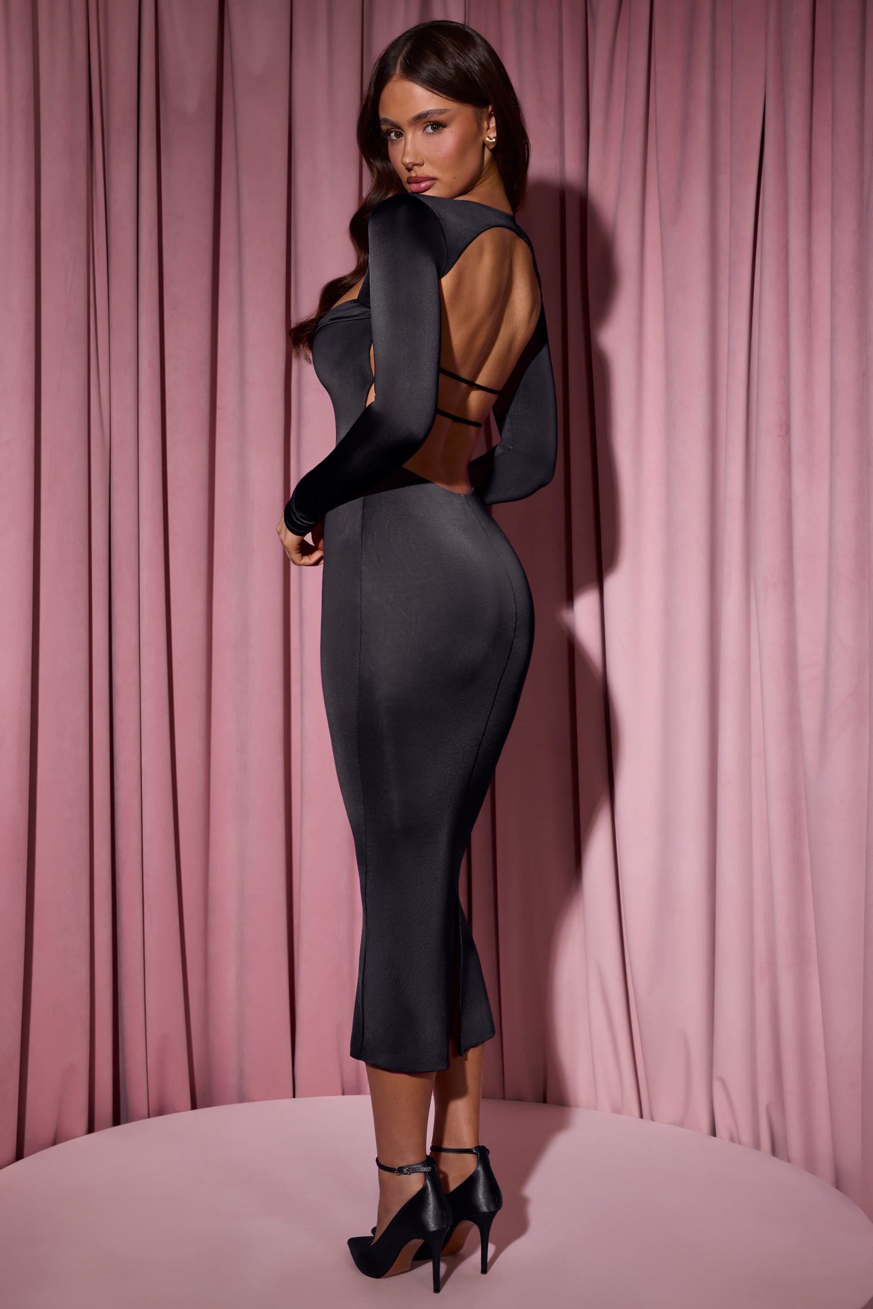 Cowl-Neck Long-Sleeve Midaxi Dress in Black
