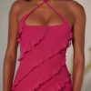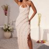 A reinvention of our bestselling style Nevali, the Calico evening gown is a show-stopping piece guaranteed to leave a lasting impression. Featuring a decolletage-enhancing cross front halter neckline, floor length design, seductive thigh-high split and ruffle detailing throughout.