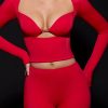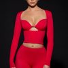 Striking contrasts. An illusionary design crafted for maximum impact, the Lilith top is made from premium, high-shine stretch jersey to a figure-hugging silhouette. Framed with fitted long sleeves, it features moulded cups with darts, cut-out detailing at the front, and a shaped sweetheart neckline.