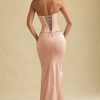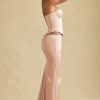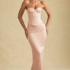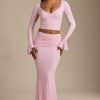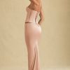 Draped Low-Rise Maxi Skirt in Beige Gold