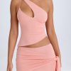 Draped Mid-Rise Mini Skirt in Apricot Pink