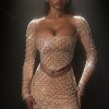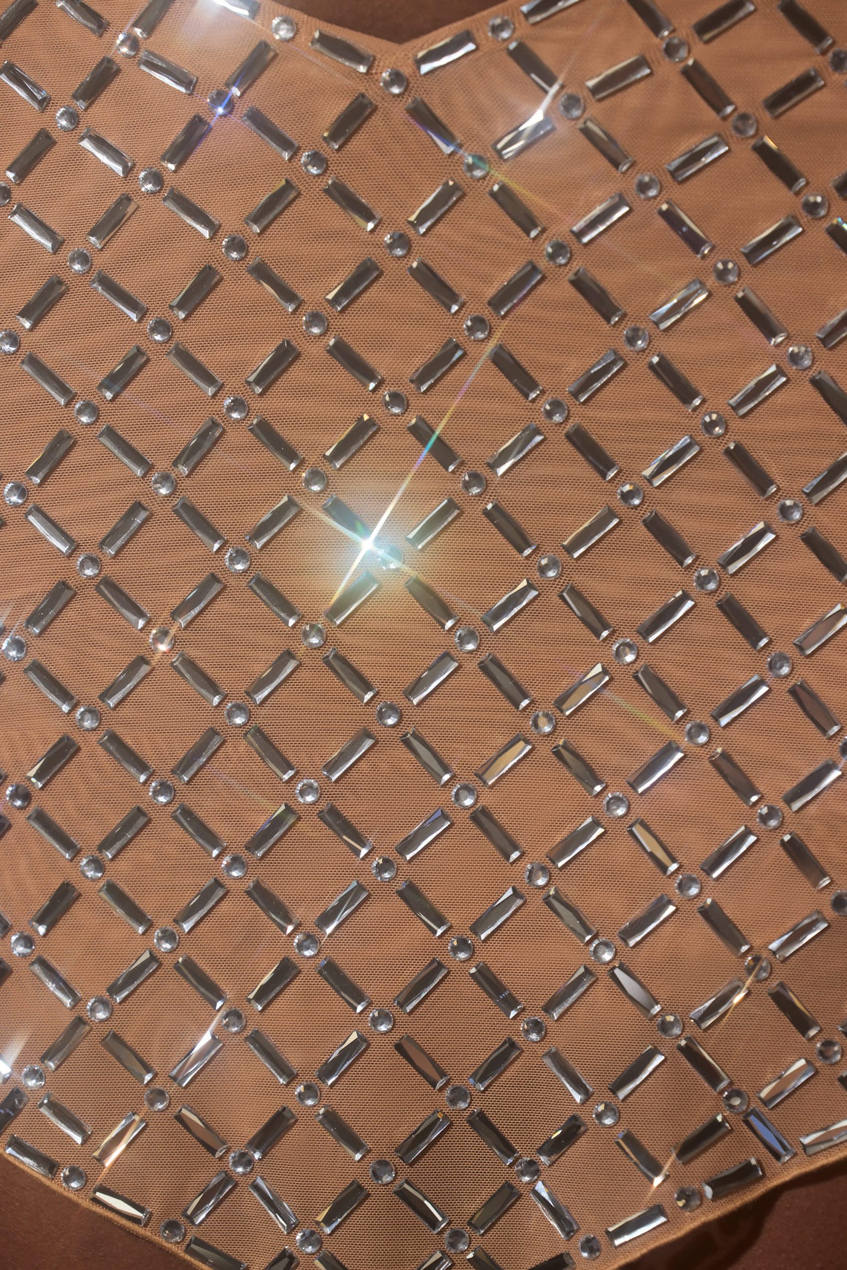 Celebrate in style with the Thora crop top, a stunning design crafted from our premium 40D stretch mesh for an unrestrictive second-skin fit and saturated with all-new square HOTFIX embellishments. Elevated with a built-in corset bodice for enhanced support and shaping, it’s framed with long fitted sleeves, a sculpting dipped hem and a statement cut-out back, complete with an adjustable strap for a custom fit.