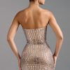 Scene-stealing silhouettes. Designed to capture attention, the Aurora dress is embellished with scores of sparkling HOTFIX embellishments that catch the light. Underlaid with a double-layered mesh lining for enhanced coverage, it’s crafted from figure-hugging power and 20D mesh to a bandeau silhouette and comes complete with detachable camisole straps for enhanced support.