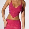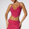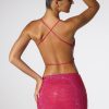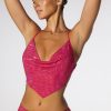 Catch the light. Designed in a premium stretch mesh fabric and adorned with hand embellishment throughout, the Rocco crop top is your essential sultry separate—complete with angled hem and a sexy strappy back.