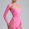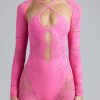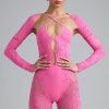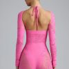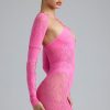 Dusk ‘til dawn styling. Made for stylishly moving through the crowds and dancing the night (or day) away, the Melody unitard is crafted from our seamless knit fabric that sculpts to your figure for a supportive fit. It’s punctuated with cut-out elements at the front and semi-sheer lace panels that create a contoured effect. Long fitted sleeves frame the halterneck silhouette and rhinestone embellishments add a sparkling touch.