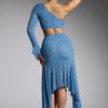 Embellished Handkerchief Hem Gown Skirt in Smokey Blue