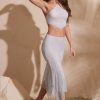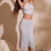 Embellished Handkerchief Hem Midaxi Skirt in Silver