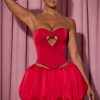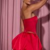 Romance in every detail. If you love statement details, then our Amora top is made for you, thanks to the heart-shaped cut-out at the front, brought to life with signature HOTFIX embellishments that sparkle under spotlights. Cut to a classic corset silhouette that sculpts and cinches your shape, complete with an adjustable lace-up back, it’s crafted from lustrous bonded satin and features a dipped hem at the front.