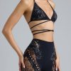A festival season must-have. Create high-impact, experimental looks with the Bonnie shorts. Designed to sit high on the waist, they’re made from our seamless knit fabric that sculpts to your figure for a supportive fit. Intricate lace panels and laser-cut details trace each side, creating a contoured look that’s animated with rhinestone embellishments.