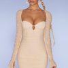 Ultra-luxe and undeniably sexy, the St. Germain mini dress is the perfect statement mini dress. Designed in our body contouring stretch mesh fabric, St. Germain is fully ruched for an endlessly flattering fit. Featuring semi sheer raglan sleeves with hand embellished pearl and bead detailing that flare at the wrist and cut to a leg lengthening mini length, St. Germain can be relied upon to exude allure at your next event.