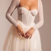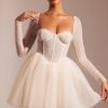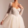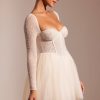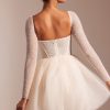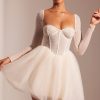 Embellished Long Sleeve Tulle Skirt Mini Dress in Ivory