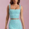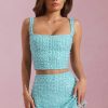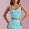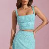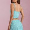Embellished Low-Rise Mini Skirt in Aqua Blue