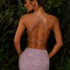 Catch the light in Cruz, a ’90s-inspired low rise mini skirt that comes adorned with delicate hand embellishment throughout. Designed to stand out, the figure-hugging silhouette features a narrow slit at the thigh, and makes an impact on its own and when worn with the coordinating top.