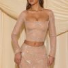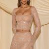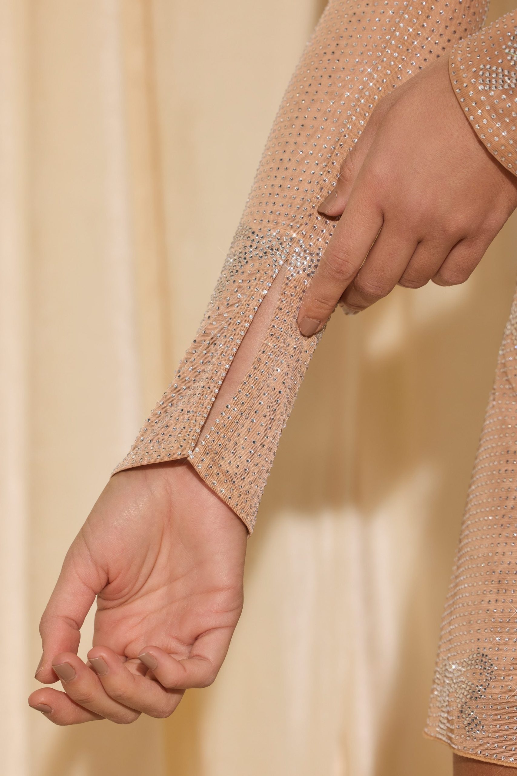 Embellished Mid-Rise A-Line Mini Skirt in Almond
