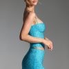 Embellished Mid-Rise Micro Mini Skirt in Aqua Blue