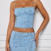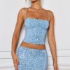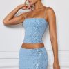 Embellished Mid-Rise Micro Mini Skirt in Light Blue
