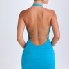 Hardware Detail Cut-Out Cowl-Neck Mini Dress in Aqua Blue