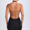 Hardware Detail Cut-Out Cowl-Neck Mini Dress in Black