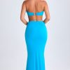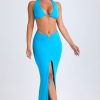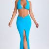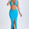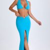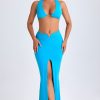 Curate your dream holiday look with the Zweena maxi skirt. Designed to sculpt and shape to your figure, it’s crafted from premium, soft-touch sheer jersey to a bodycon silhouette, complete with a statement front split. It’s set on an elasticated V-shaped waistband, elevated with slender strap detailing at each side and a small rounded cut-out anchored with polished O-ring hardware.