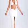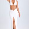 Curate your dream holiday look with the Zweena maxi skirt. Designed to sculpt and shape to your figure, it’s crafted from premium, soft-touch sheer jersey to a bodycon silhouette, complete with a statement front split. It’s set on an elasticated V-shaped waistband, elevated with slender strap detailing at each side and a small rounded cut-out anchored with polished O-ring hardware.