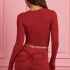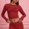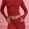 Lace-Trim Appliqué Pyjama Top in Ruby Red
