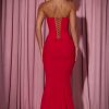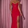 Made for sultry nights, the Marceline maxi dress is crafted from stretch georgette to a figure-defining fishtail silhouette, overlaid with a curved corset bodice that’s fully adjustable thanks to the functional lace-up fastenings at the back. It’s framed with a strapless sweetheart neckline, moulded cups for enhanced support and features a dramatic thigh-high side split.