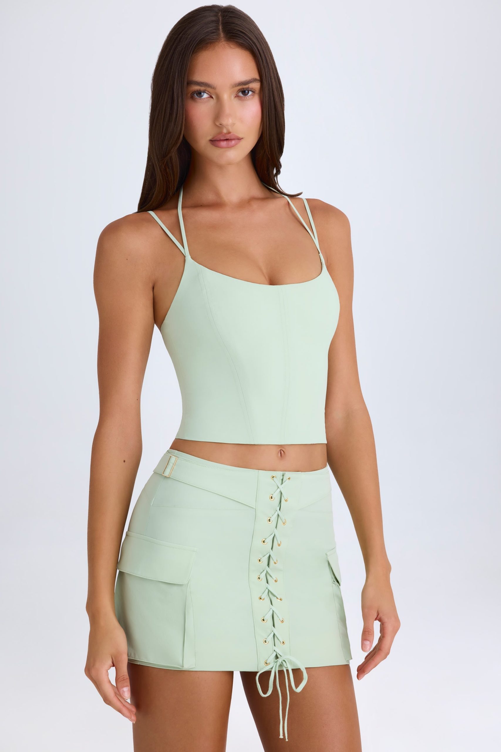 Lace-Up Micro Mini Skirt in Green