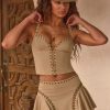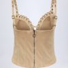 Country influences meet signature glamour with the Bela top. Crafted from soft-touch faux suede to a figure-hugging silhouette, it’s brought to life with tonal topstitching, decorative eyelets and contrasting lace-up details. It’s framed with a plunging neckline and features wide adjustable shoulder straps for a custom fit.