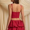 Layered Bubble Hem Mid-Rise Mini Skirt in True Red