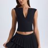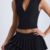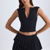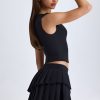 Precise tailoring. Made for versatile styling from day plans to dinner dates, the Nada mini skirt is crafted from premium stretch-woven fabric and designed for a low-rise fit. It’s elevated with two asymmetric, pleated tiers that create stunning movement with every step.