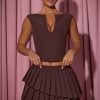 Precise tailoring. Made for versatile styling from day plans to dinner dates, the Nada mini skirt is crafted from premium stretch-woven fabric and designed for a low-rise fit. It’s elevated with two asymmetric, pleated tiers that create stunning movement with every step.