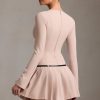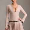 Long-Sleeve Pleated Mini Dress in Mushroom