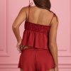 Staying in? Look and feel your best with our Cinta shorts, crafted from lightweight and breathable satin with a touch of stretch for maximum comfort. Set on an elasticated mid-rise waistband traced with a pretty frill trim, they’re cut to a non-restrictive flouncy silhouette and elevated with rouleau bows at either side. Treat yourself or someone special to the lounge set of dreams and pair it with the Caramia top.