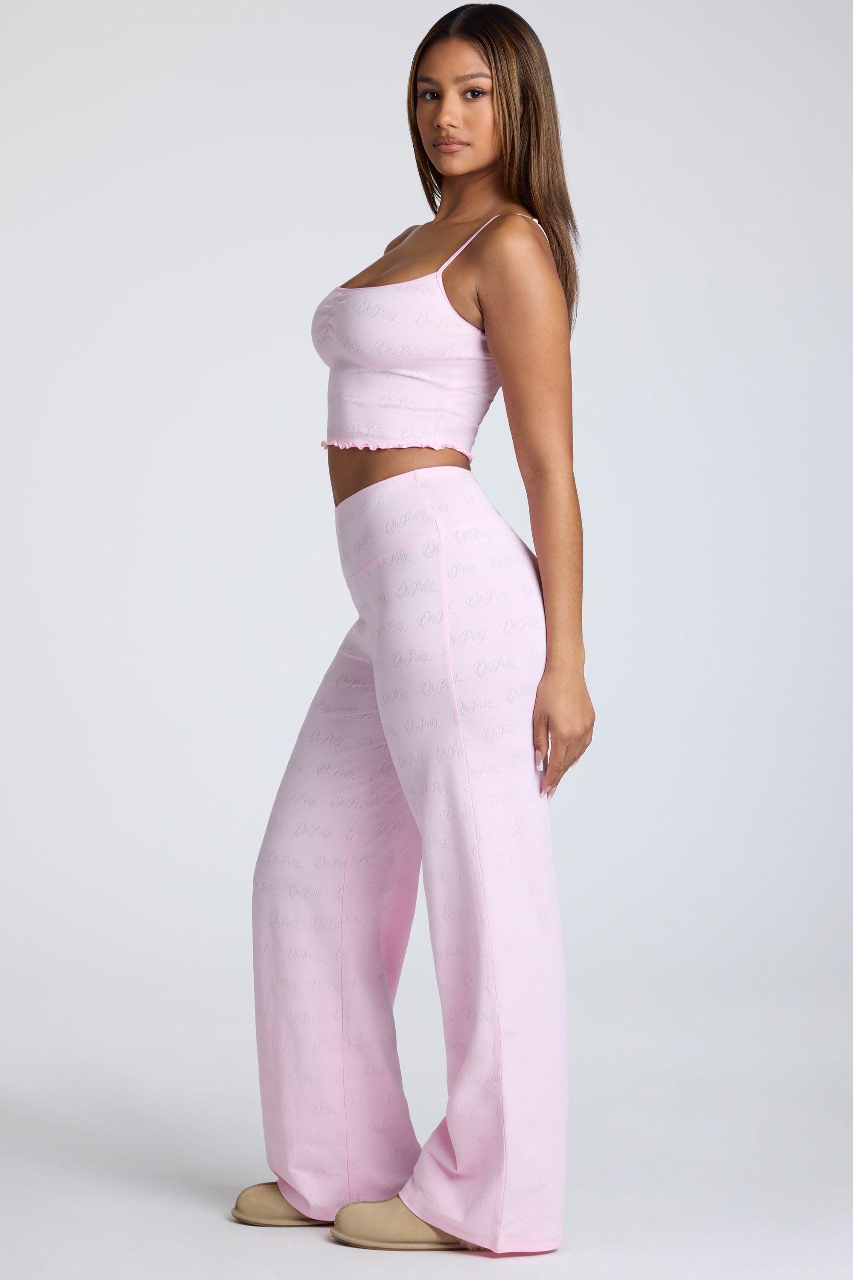Mid Rise Straight Leg Pointelle Trousers in Baby Pink