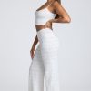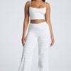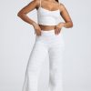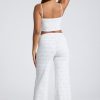 Mid Rise Straight Leg Pointelle Trousers in White