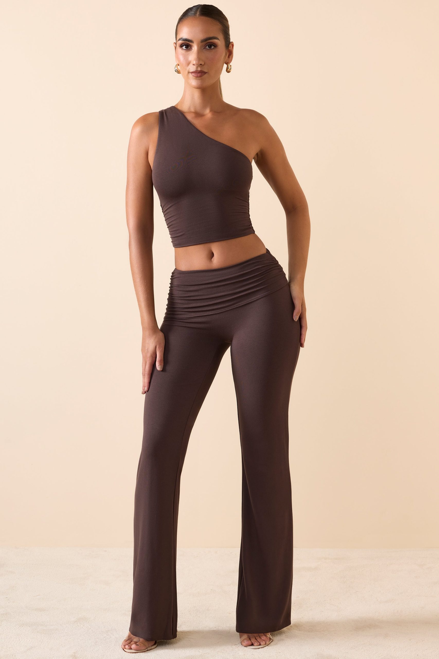 Mid Rise Straight Leg Trousers in Chocolate Brown