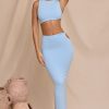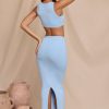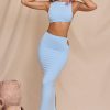 Mid Rise Twist Maxi Skirt in Sky Blue