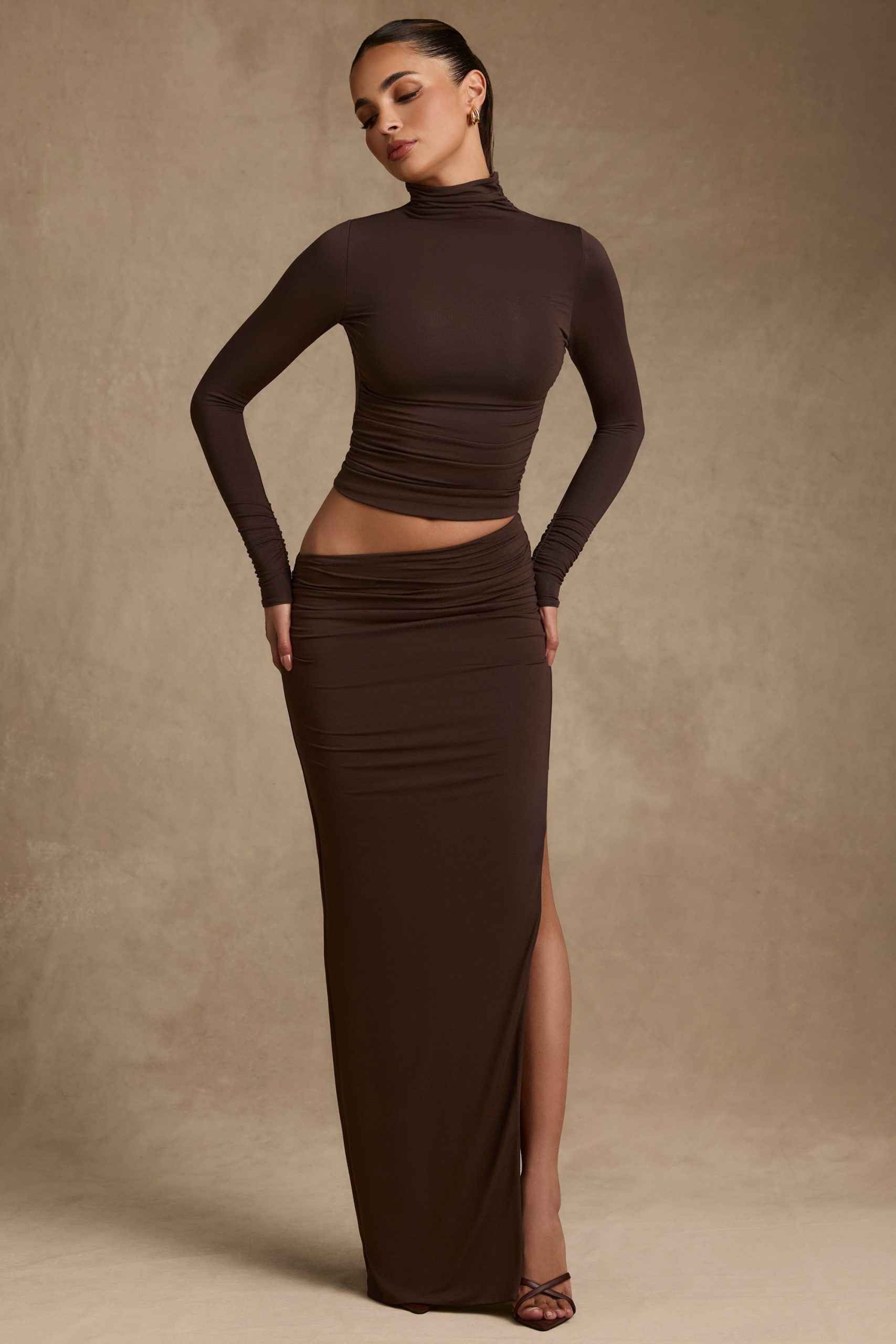 Versatile staples for all your plans. Perfect for day-to-night styling, the Nadina maxi skirt is designed with a universally flattering asymmetric elasticated waistband with a universally flattering mid-low rise fit. It’s crafted from buttery soft, stretchy and breathable jersey made with TENCEL™ Modal fibres, derived from controlled or certified wood sources, and features a thigh-high side split for ease of movement.