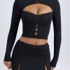 Chic co-ords. Perfect for pairing with a tonal top from the collection, the Dalla A-line mini skirt is crafted from buttery soft and breathable jersey made with TENCEL™ Modal fibres derived from controlled or certified wood sources. Designed for a low-rise fit, it’s spliced with two symmetric splits and traced with asymmetric fabric-covered buttons on either side.