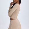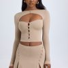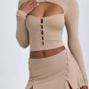 Chic co-ords. Perfect for pairing with a tonal top from the collection, the Dalla A-line mini skirt is crafted from buttery soft and breathable jersey made with TENCEL™ Modal fibres derived from controlled or certified wood sources. Designed for a low-rise fit, it’s spliced with two symmetric splits and traced with asymmetric fabric-covered buttons on either side.