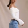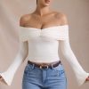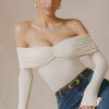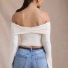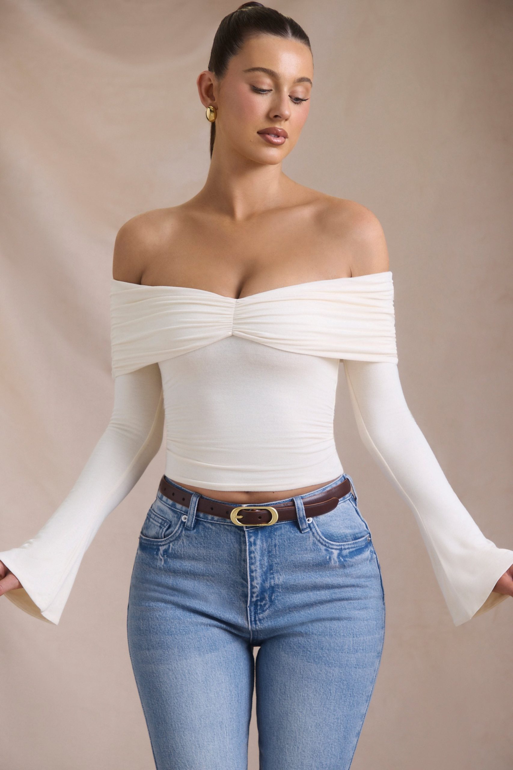 Slip into relaxed luxury with the Pavni top. Made from soft and luxe modal-cashmere blend with breathable, temperature-regulating properties and cloud-like softness, it’s cut to a figure-defining bodycon silhouette, framed with an off-shoulder ruched neckline and long flared sleeves, perfect for pairing with a coordinating maxi skirt or jeans for a dressed-up casual vibe.