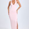 Modal Lace-Trim Halterneck Maxi Dress in Blush