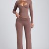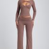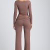 Modal Mid-Rise Straight-Leg Trousers in Taupe